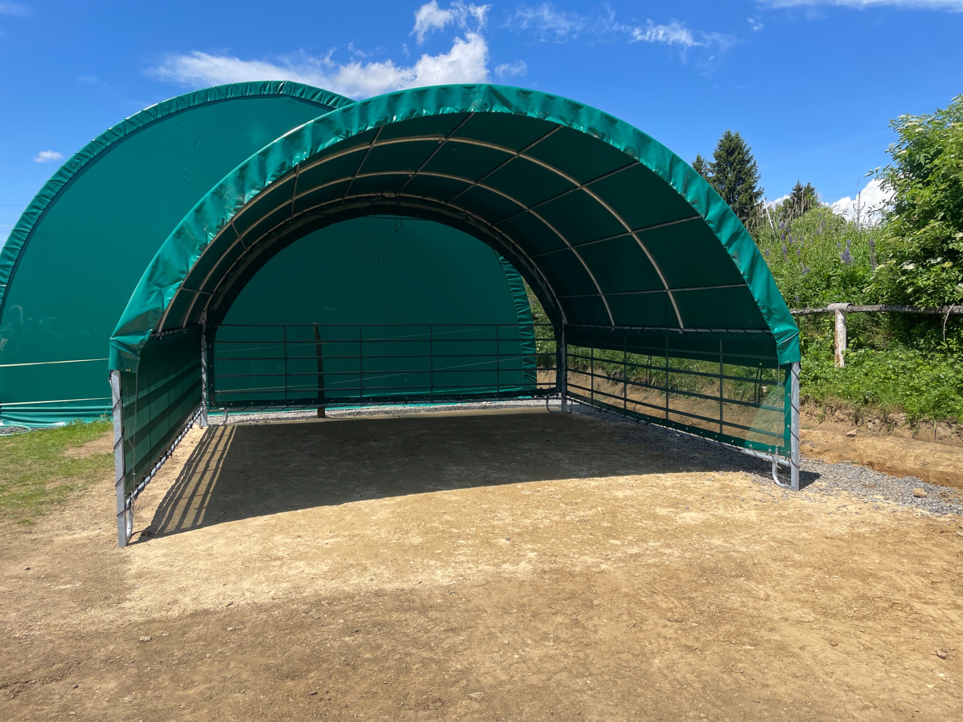 Naše plachtové přístřešky jsou ideálním řešením pro chovatele koní a skotu, kteří potřebují zajistit zvířatům ochranu před deštěm, větrem i sluncem. Přístřešek vytváří bezpečné a chráněné místo přímo na pastvině nebo ve volném výběhu a poskytuje zvířatům komfort v každém ročním období.